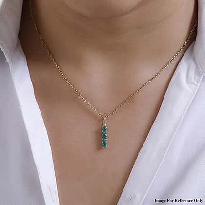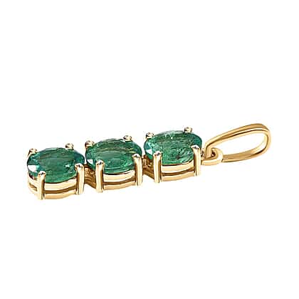 9K Yellow Gold AAA Gemfields Emerald 3 Stone Pendant 0.92 Ct.
