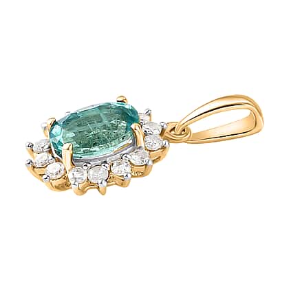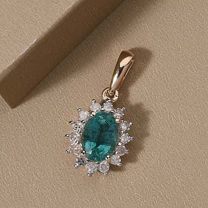 9K Yellow Gold AAA Kagem Zambian Emerald and Diamond I3 GH Halo Pendant 1.04 Ct