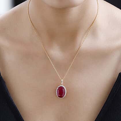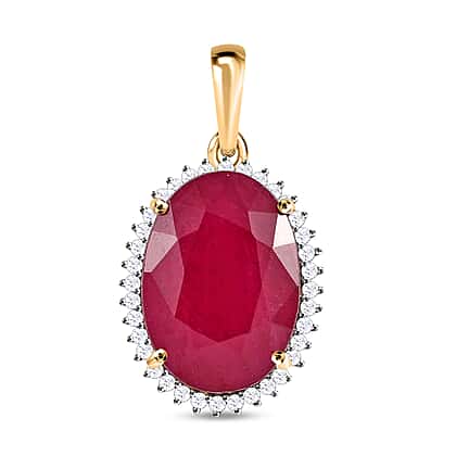 9K Yellow Gold African Ruby & Moissanite Pendant 19.57 Ct.