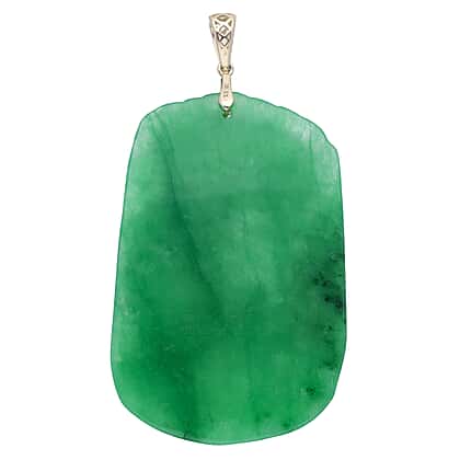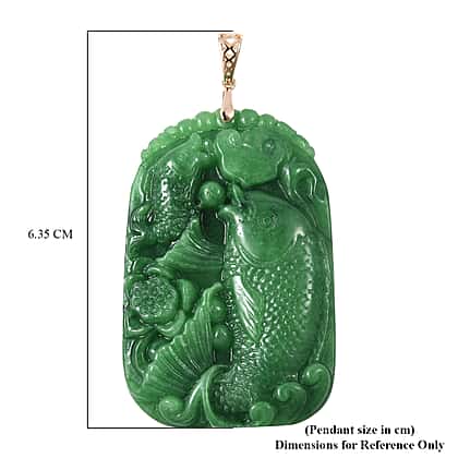 9K Yellow Gold Carved Green Jade Fish Pendant 110.00 Ct.
