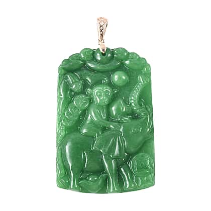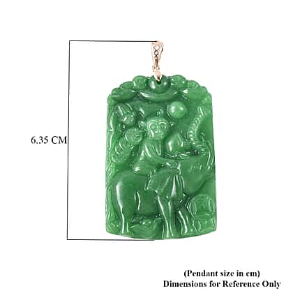 9K Yellow Gold Carved Green Jade Monkey on Elephant Pendant 95.00 Ct.