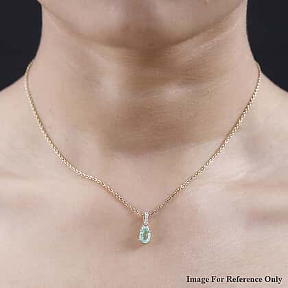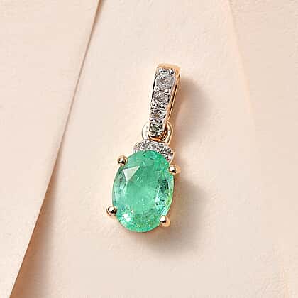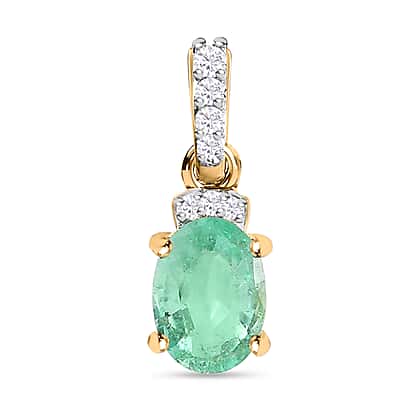 9K Yellow Gold AA Colombian Emerald, White Diamond Pendant 0.81 Ct