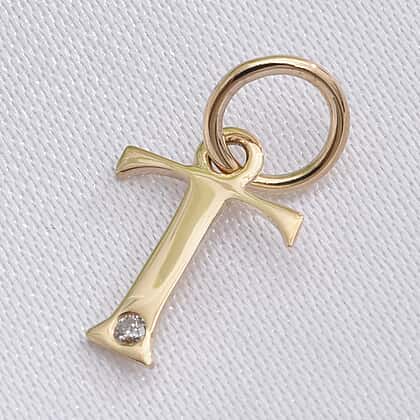 9K Yellow Gold Diamond Initial T Pendant