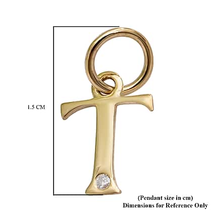 T Initial Solitaire White Diamond Pendant in 9K Yellow Gold