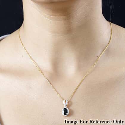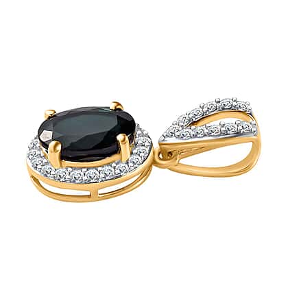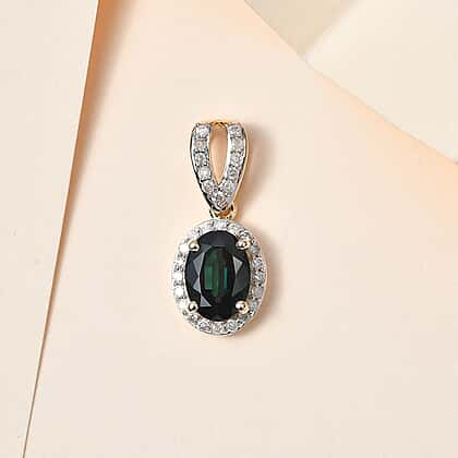 9K Yellow Gold Indicolite & Diamond Halo Pendant 1.71 Ct.