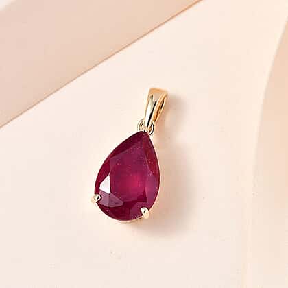 9K Yellow Gold Pear Cut AA African Ruby Solitaire Pendant 4.21 Ct.