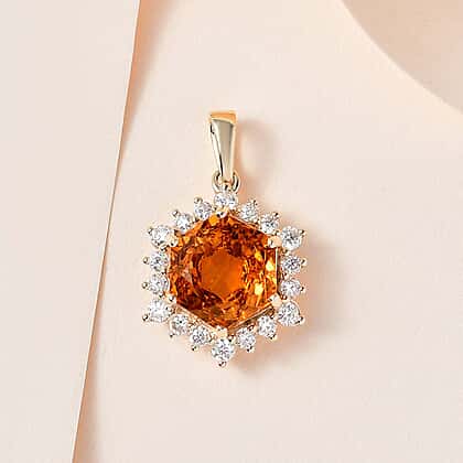 9K Yellow Gold Serra Gaucha Citrine and Moissanite Pendant 3.52 Ct.