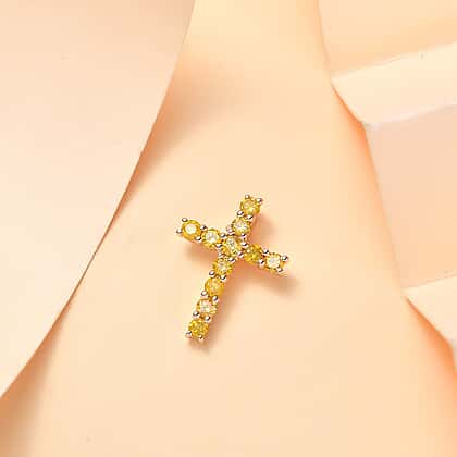 9K Yellow Gold SGL Certified Natural Yellow Diamond Cross Pendant 0.50 Ct