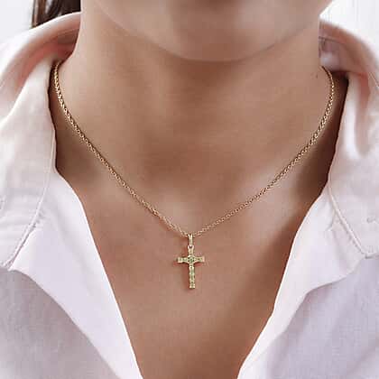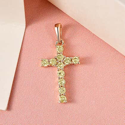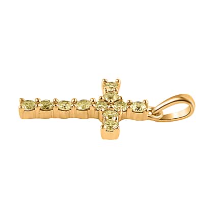 9K Yellow Gold SGL Certified Natural Yellow Diamond I3 Cross Pendant 0.50 Ct