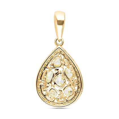 9K Yellow Gold SGL Certified Natural Yellow Diamond I2 I3 Drop Pendant 1 Ct