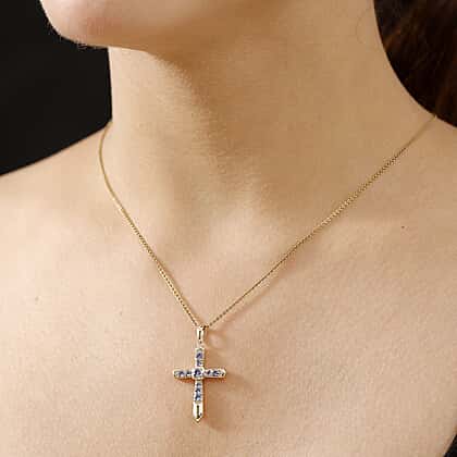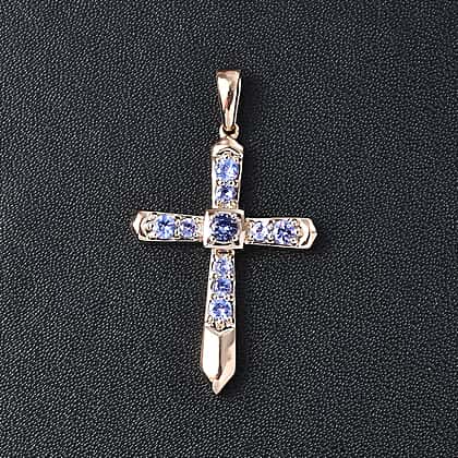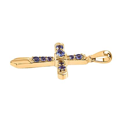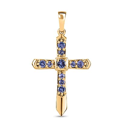 9K Yellow Gold Tanzanite Cross Pendant 0.60 Ct.