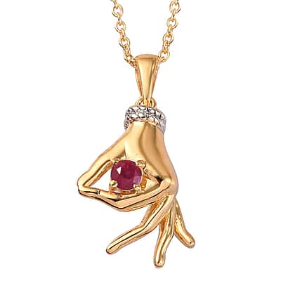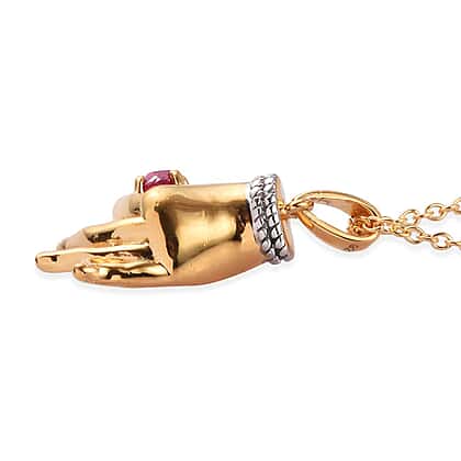 AA African Ruby Mudra Hand Pendant With Chain (Size 20) in Yellow Gold and Platinum Overlay Sterling Silver 0.35 Ct, Silver wt. 8.30 Gms
