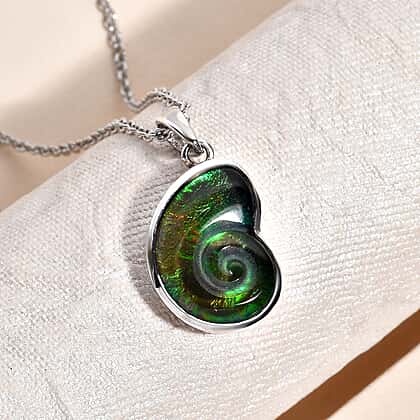 AA Ammolite Pendant with Chain (Size-18) in Platinum Overlay Sterling Silver 4.41 Ct.