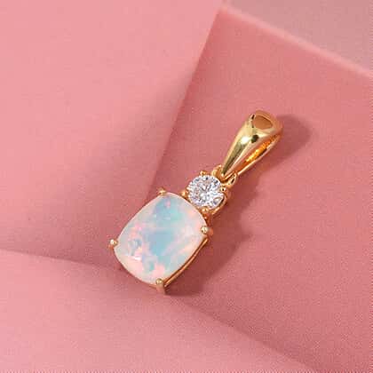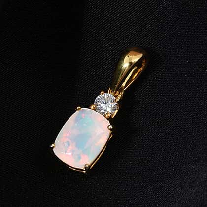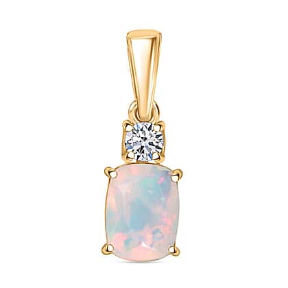 AAA Ethiopian Opal & Lab Grown Diamond Pendant in Yellow Gold Sterling Silver 1.00 Ct.