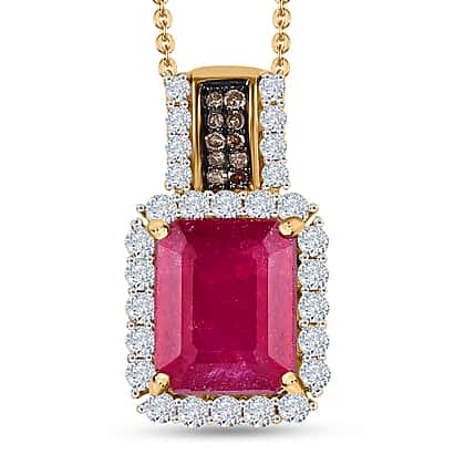 With our exquisite African Ruby, Natural Cambodian Zircon and Champagne Diamond Pendant with Chain, you ought to shine at your best every time you sport it on your neck. The gold-plated silver ensures durability. Whether you're looking for a gift for a loved one or simply want to treat yourself to a new ornament, this pendant is the perfect choice.