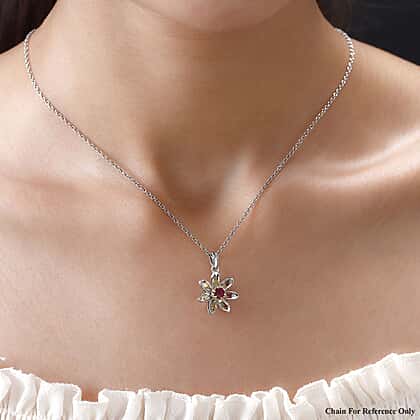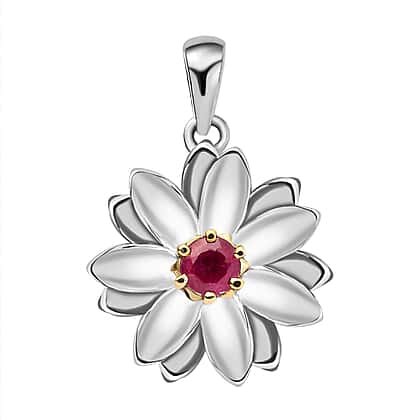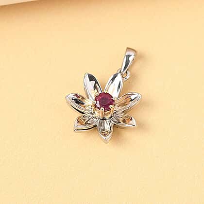 African Ruby (FF) Floral Pendant in Platinum and Gold Overlay Sterling Silver