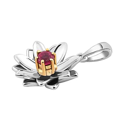 July Birthflower Water Lily with Ruby Pendant in Two Tone Sterling Silver