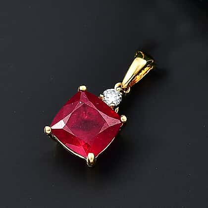 African Ruby, Lab Grown Diamond Solitaire Pendant in 18K YG VermeilSterling Silver 6.100 Ct.