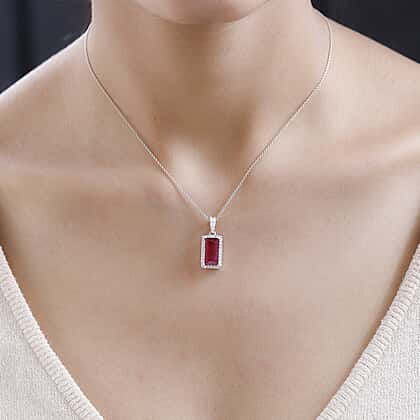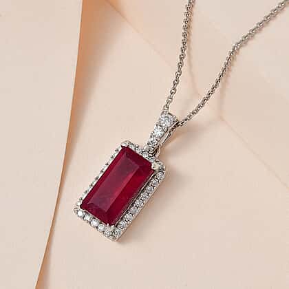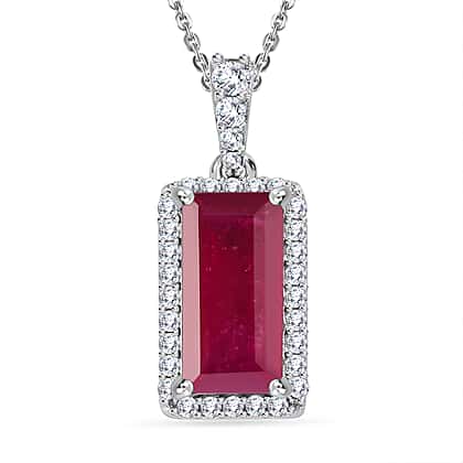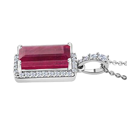 African Ruby & Moissanite Pendant with Chain (Size 20) in Platinum Overlay Sterling Silver 4.24 Ct.