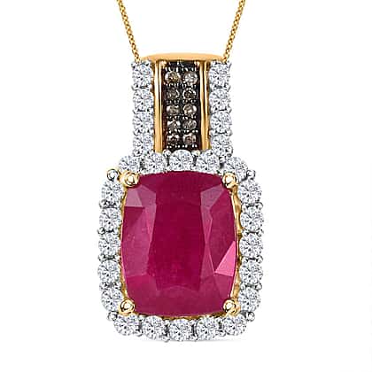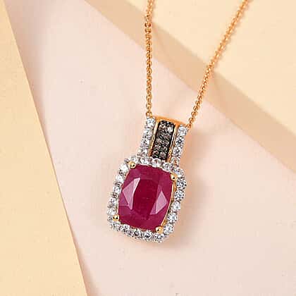 With our exquisite African Ruby, Natural Cambodian Zircon and Champagne Diamond Pendant with Chain, you ought to shine at your best every time you sport it on your neck. The gold-plated silver ensures durability. Whether you're looking for a gift for a loved one or simply want to treat yourself to a new ornament, this pendant is the perfect choice.