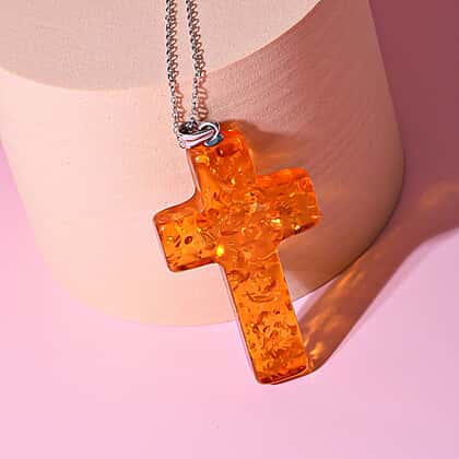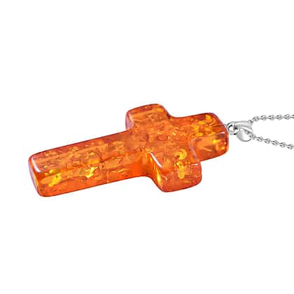 Style your outfit with this simple and divine amber cross pendant and make heads turn around. This pendant is made from 925 sterling silver with a rhodium overlay. It features a cross shape pendant made from amber, giving bright orange colour sparkle and shine. To complete the set, you can wear this pendant with a silver chain by the TJC collection.