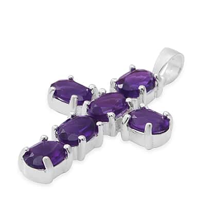 Cross Amethyst Pendant in Sterling Silver 2.4 Ct.