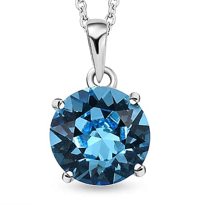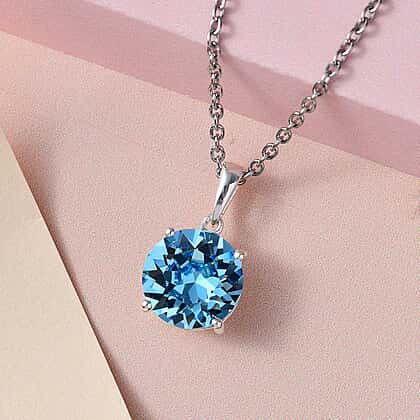 Aquamarine Austrian Crystal Pendant with Stainless Steel Chain (Size 20)