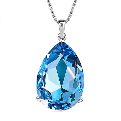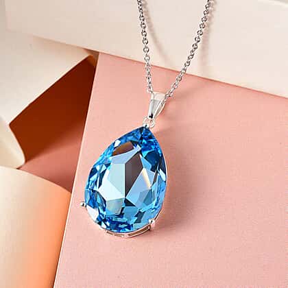 Aquamarine Crystal Pendant (Pear 30x20) in Sterling Silver with Stainless Steel Chain (Size - 20)