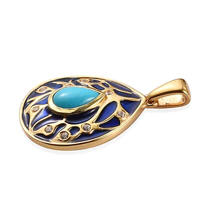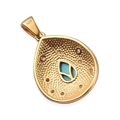 2.18 Ct Arizona Sleeping Beauty Turquoise and Zircon Enamelled Teardrop Pendant in 14K Gold Plated Sterling Silver