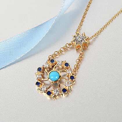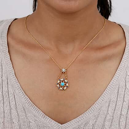 - CUT AND CARAT: A round cut Arizona Sleeping Beauty Turquoise is accented in the middle in a bezel setting, embellished by zircons at the tips of the shapely motifs. The pendant is offered a total gemstone weight of 1 ct.