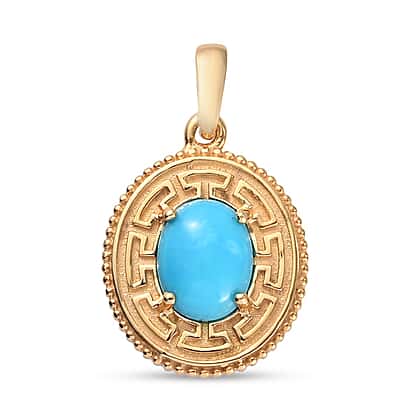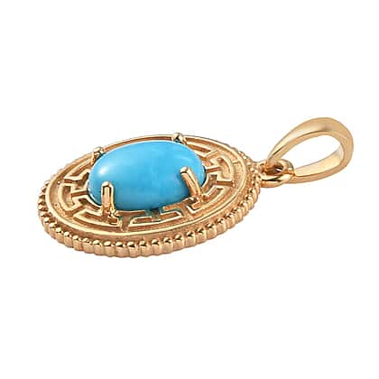 Greek Key - Sleeping Beauty Turquoise Pendant in Gold Plated Sterling Silver