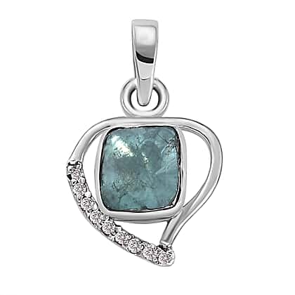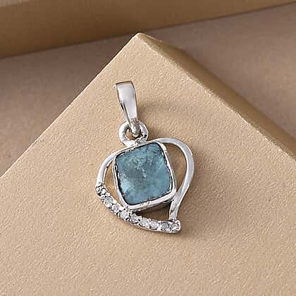 Artisan Crafted Polki Blue Diamond and White Diamond Pendant in Platinum Overlay Sterling Silver 0.31 Ct.