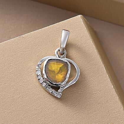 Artisan Crafted Polki Yellow Diamond and White Diamond Pendant in Platinum Plated Sterling Silver 0.31 Ct.
