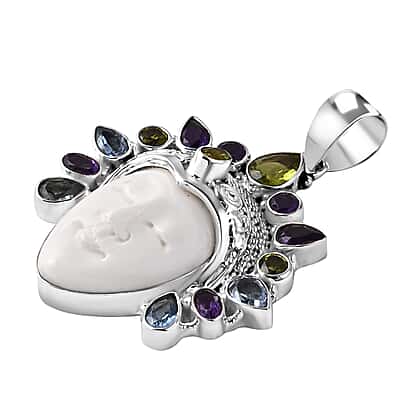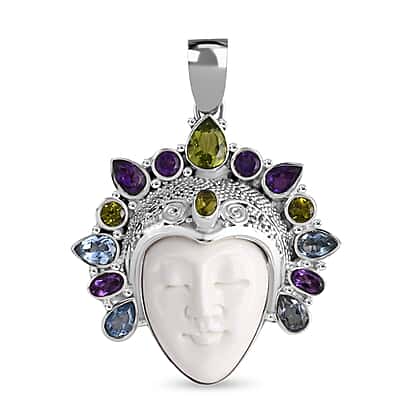 Bali Legacy - Ox Bone, Peridot, Swiss Blue Topaz & African Amethyst Pendant Sterling Silver 20.62 Ct, Silver Wt. 16.98 Gms.