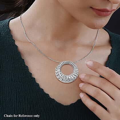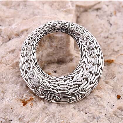 The intricate textured finish of this Sterling Silver Pendant from the Royal Bali Collection lends it an unconventional air. Bearing a vintage look, the pendant has been crafted using centuries-old Balinese jewellery making techniques. Measuring 4 cm, the broad circle pendant makes a bold statement. Sterling silver, which is a durable metal, makes it a timeless piece.