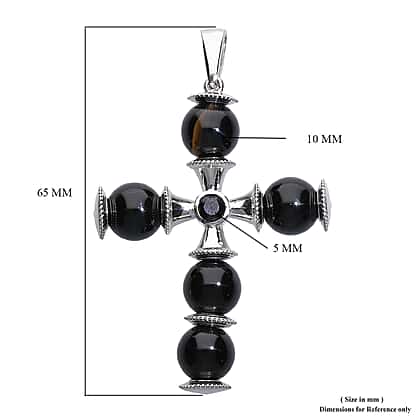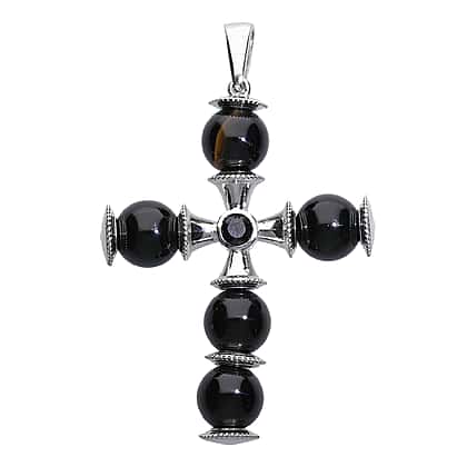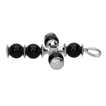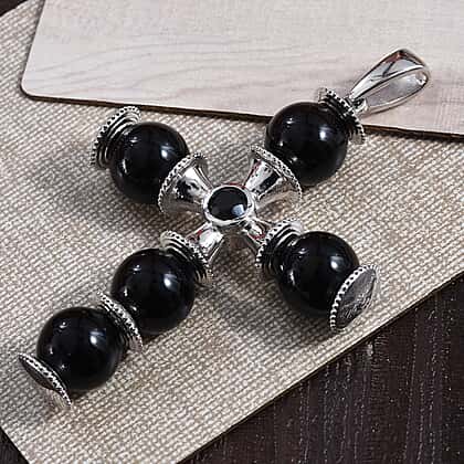 Black Onyx (Rnd), Boi Ploi Black Spinel Cross Pendant in Platinum Plated 39.25 Ct.