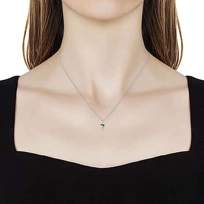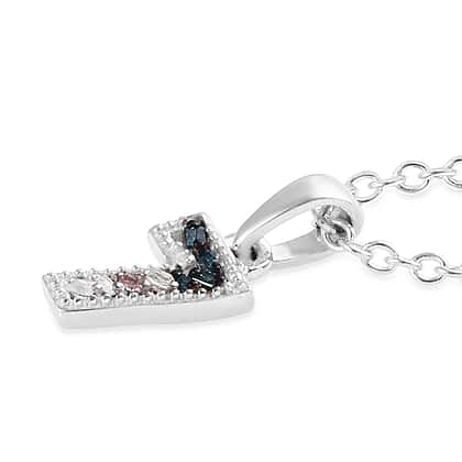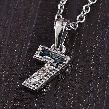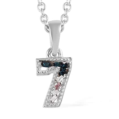 Blue and White Diamond Number Seven Pendant with Chain (Size 18) in Platinum Overlay Sterling Silver 0.03 Ct.