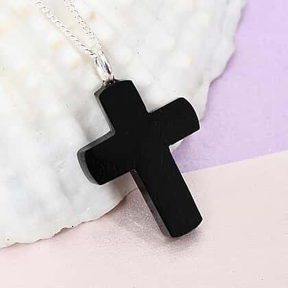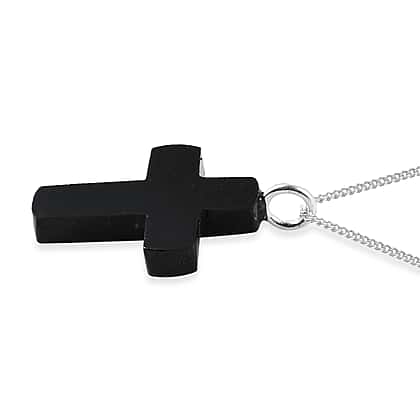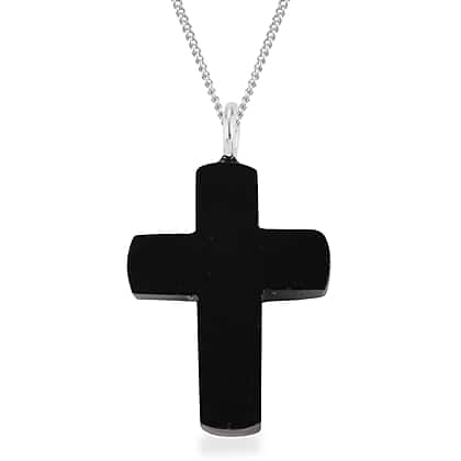 California Black Jade Cross Pendant With Chain in Sterling Silver 4.50 Ct.