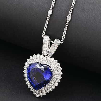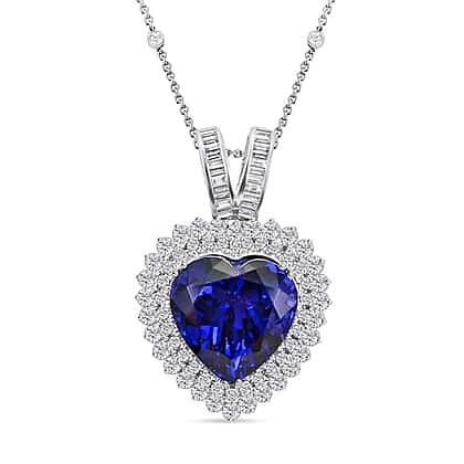 Certified and Appraised RHAPSODY 950 Platinum AAAA Tanzanite, Diamond Heart Necklace 23.45 Ct