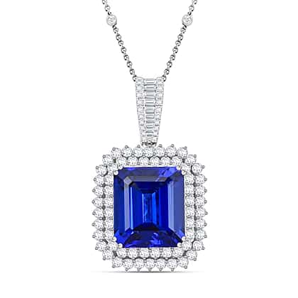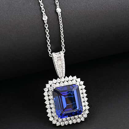 Certified and Appraised RHAPSODY 950 Platinum AAAA Tanzanite, Diamond Pendant Necklace 18 Inches