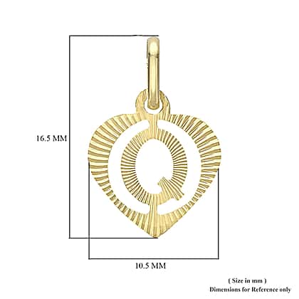 Children Diamond Cut Q Initial Heart Pendant in 9K Yellow Gold
