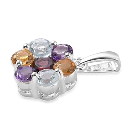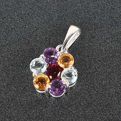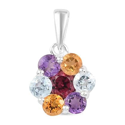 Citrine, Bolivian Amethyst, Skyblue Topaz and Rose Garnet Floral Pendant in Sterling Silver 1.520 Ct.