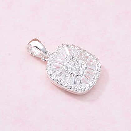 Cubic Zirconia Cluster Pendant in Rhodium Overlay Sterling Silver
