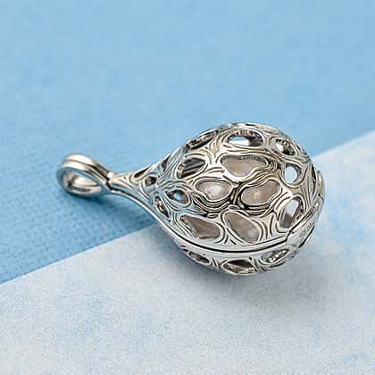 The White Edison Pearl Caged Pendant is designed in Rhodium Overlay Sterling Silver. The pearl, pure and serene, is cradled within a lattice of dreams, each thread of the cage a whisper of tales untold. This White Edison Pearl Pendant is fashioned from the finest 925 Sterling Silver with a protective rhodium overlay. The round Edison pearl, in its lustrous cabochon cut, is a beacon of light within the intricate embrace of silver, a harmonious blend of nature's perfection and artisanal wonder.