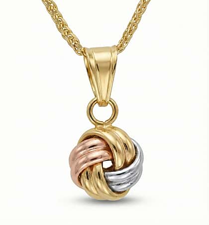 Rooted in symbolism, this designer-inspired double knot pendant celebrates connection, balance, and lasting bonds. Crafted from solid 9K yellow gold, it’s hypoallergenic, suitable for sensitive skin, tarnish-resistant, and won’t turn green over time. The sculptural double knot design intertwines warm yellow, soft rose, and cool white gold tones, creating depth without gemstones. Valued for rarity, durability, and rich colour, gold has long symbolised strength and commitment. The polished pendant hangs from a smooth bail, sitting comfortably against skin. Designed to satisfy the desire for meaning, it’s an expressive piece that layers or stands alone.