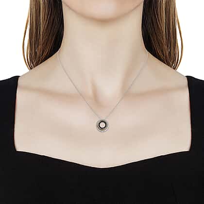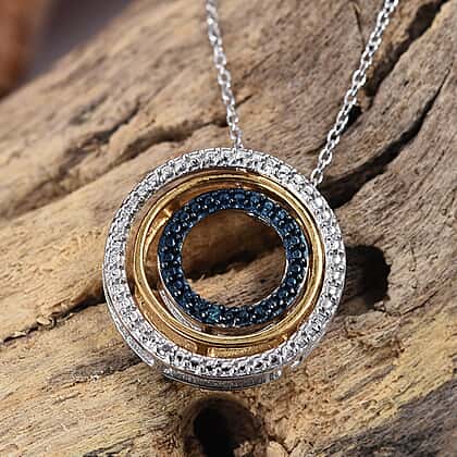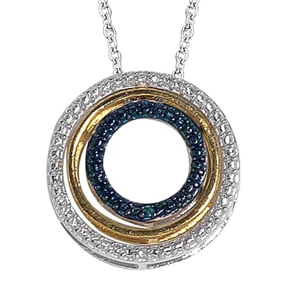 Blue and White Diamond Triple Circle Pendant with Chain in Sterling Silver 2.85 Grams 18 Inch