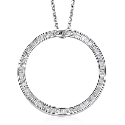Diamond (Bgt) Circle Pendant with Chain (Size 20) in Platinum Overlay Sterling Silver 1.00 Ct.