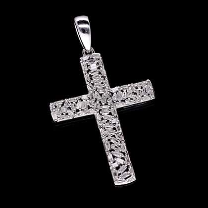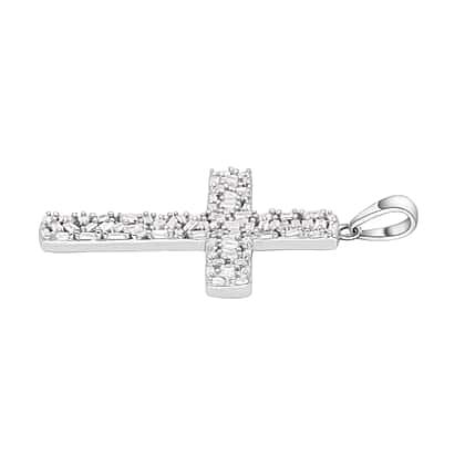 Diamond Cross Pendant in Platinum Overlay Sterling Silver 0.50 Ct.
