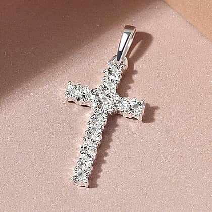 0.02 Carat Diamond Cross Pendant In Sterling Silver