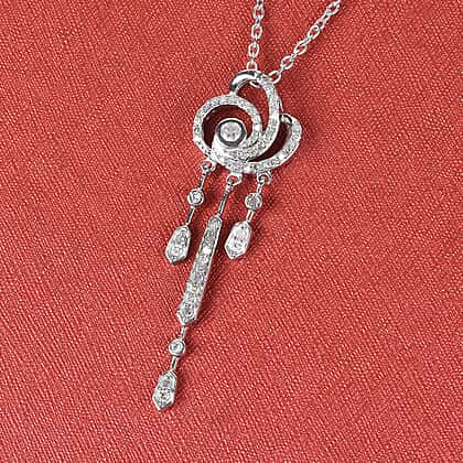 Diamond Drop Pendant with Chain (Size 18) in Platinum Overlay Sterling Silver 0.50 Ct.